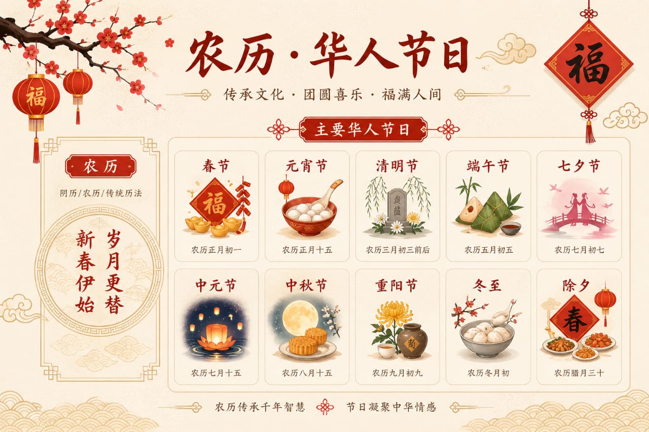 在马来西亚,华人传统节日承载着深厚的文化底蕴。本站特别整理了未来12年的农历节日对照表,并结合了马来西亚本土民俗(如拜天公、抛柑、立春存钱),助您提前规划。